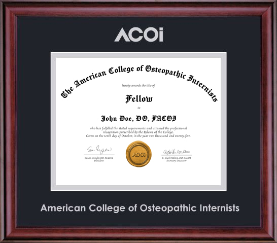 In an effort to make Fellowship more meaningful, the ACOI has commissioned the design of an elegant frame as well as a commemorative ring which you may purchase from the ACOI at cost.